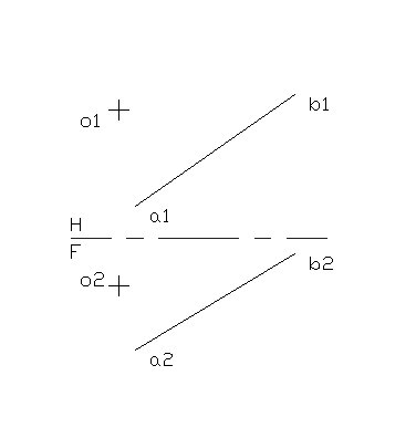 Given: Lines AB and Point O Required: Find and measure the true length of the shortest line from point O to line AB. Show that line in the given views.